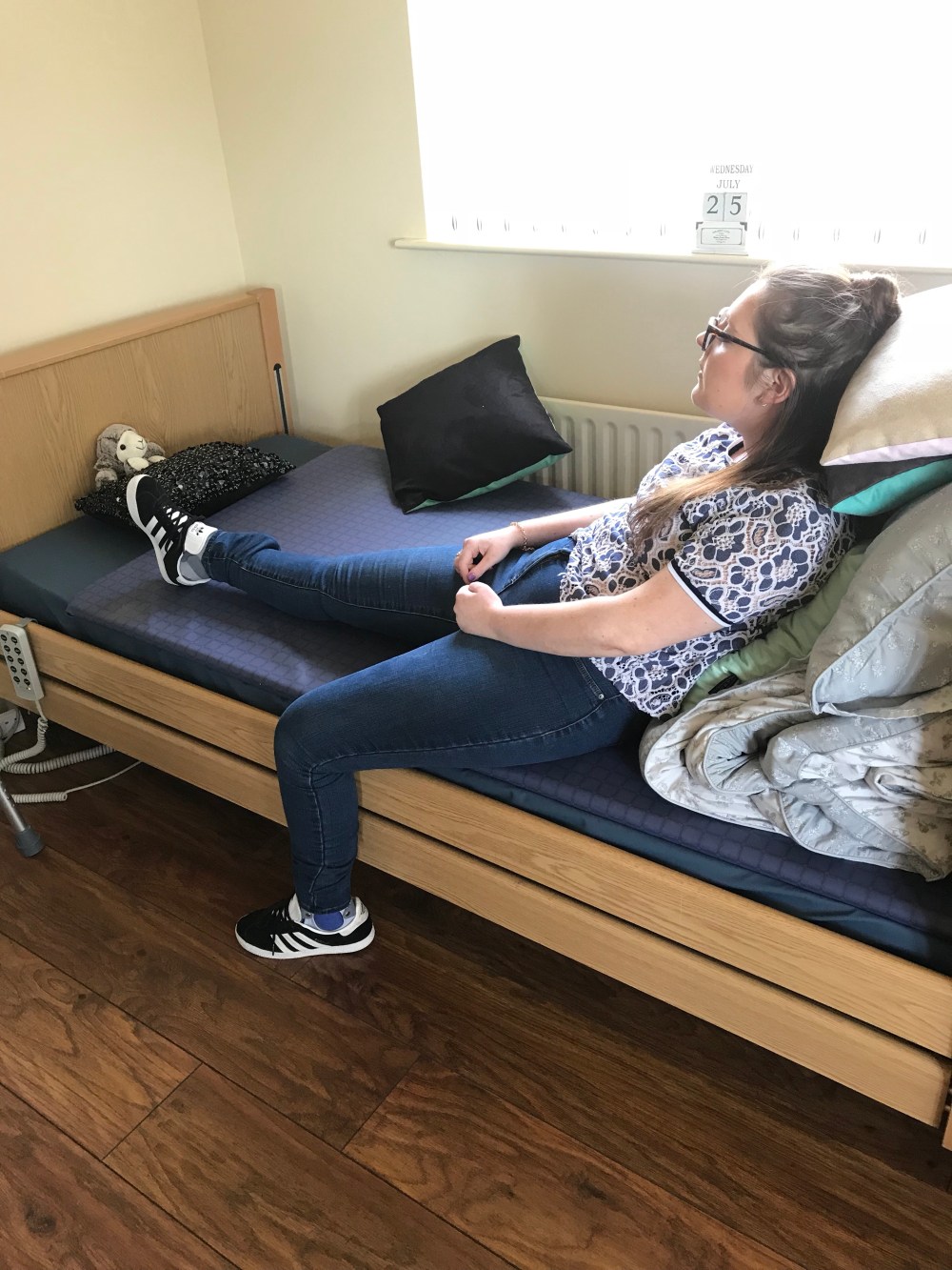 Mainly stretching on the bed.