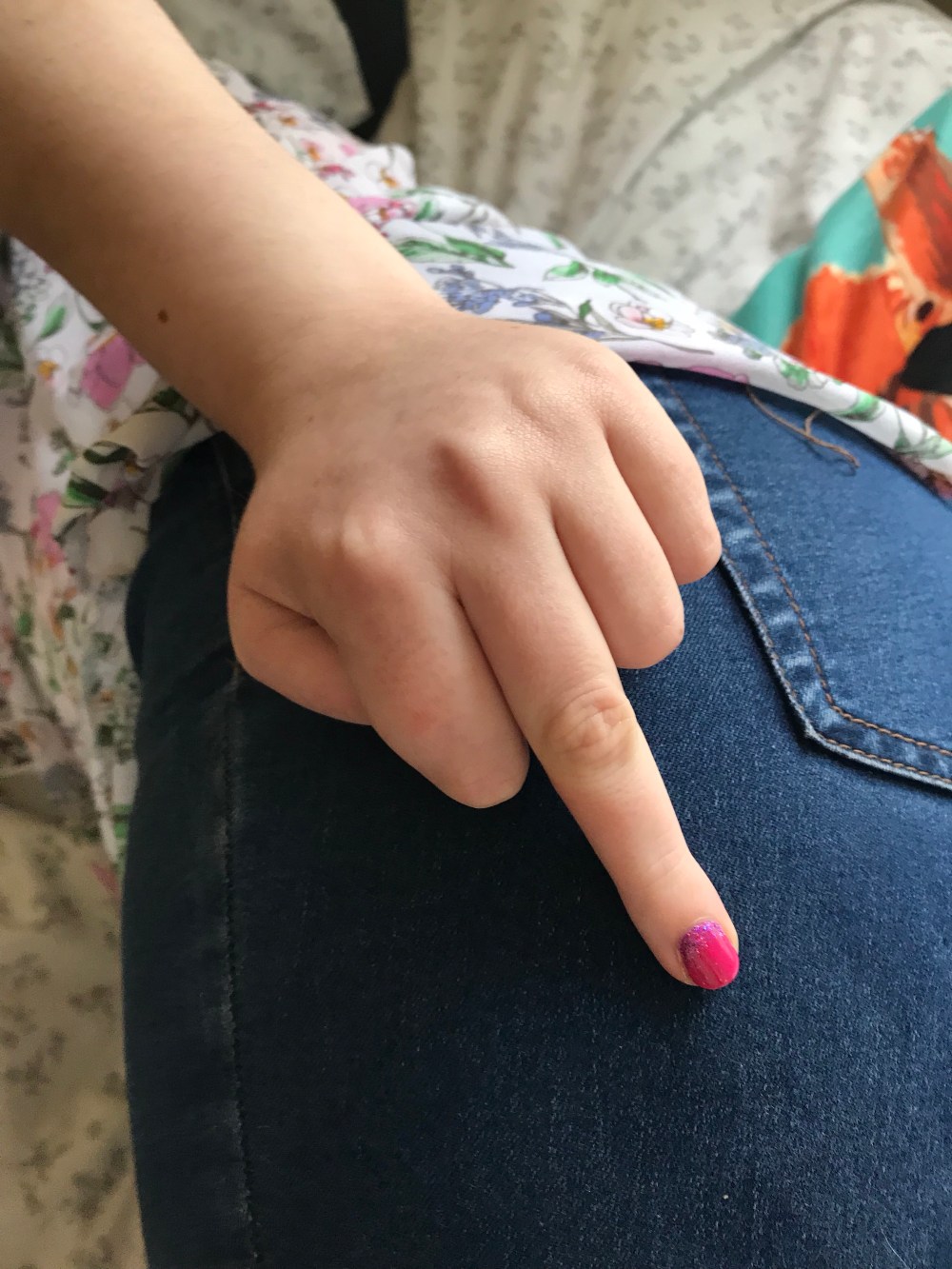 Today one of my pals and I were doing stretching and during it my fingers moved into this shape! (If you’re easily offended look away!)