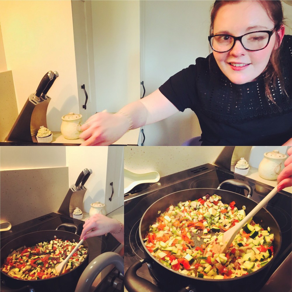 Haha tonight I made something I’d never tried before! Hairy bikers vegetable pasta thing!! Hopefully it comes out well when it’s finished cooking 🥘 🙂