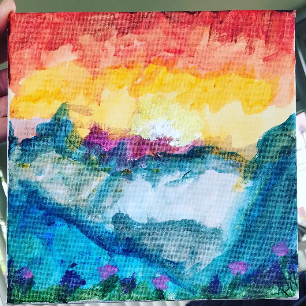 And painted a mountainous sunset for James to display at home! Cos then he always has a piece of me there! #cheesy haha.