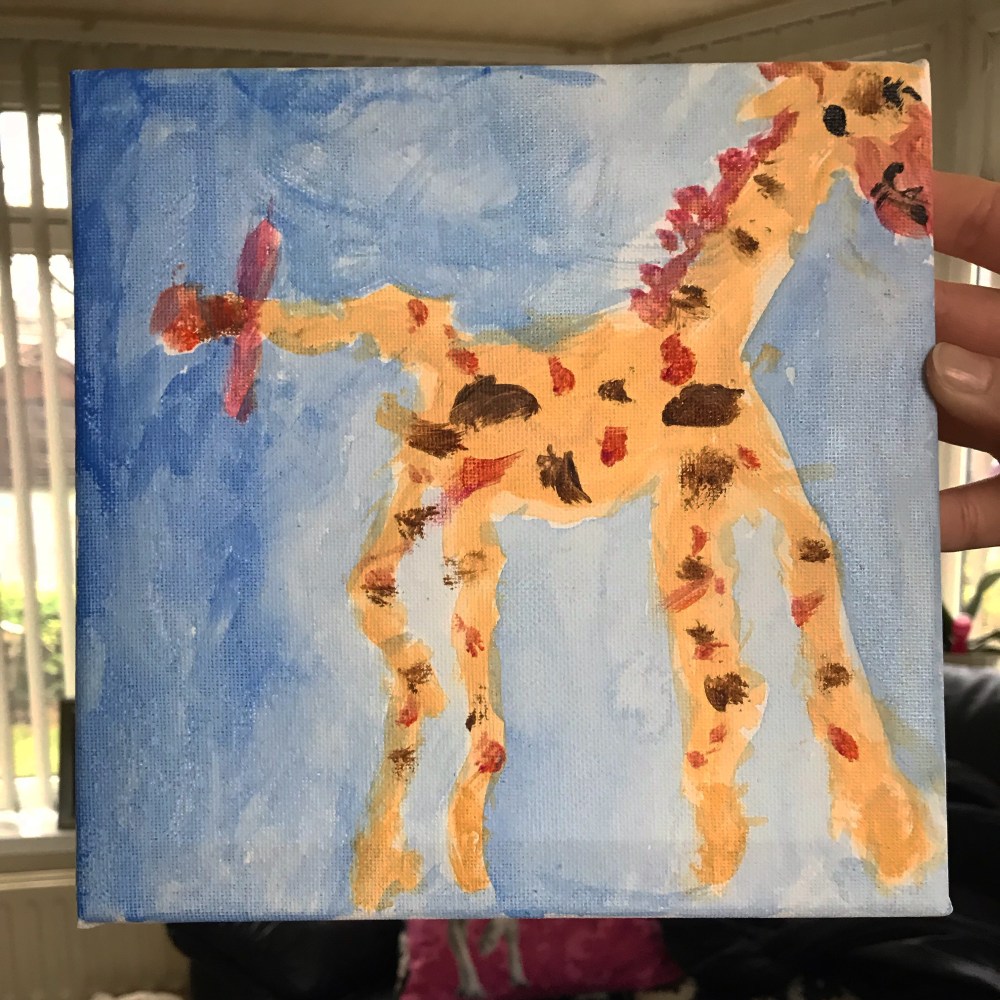 I painted a picture. It was for a lovely man who was in rabiu with me. His daughter! She loves giraffes at the moment so I painted this today 🙂 it’s for her!