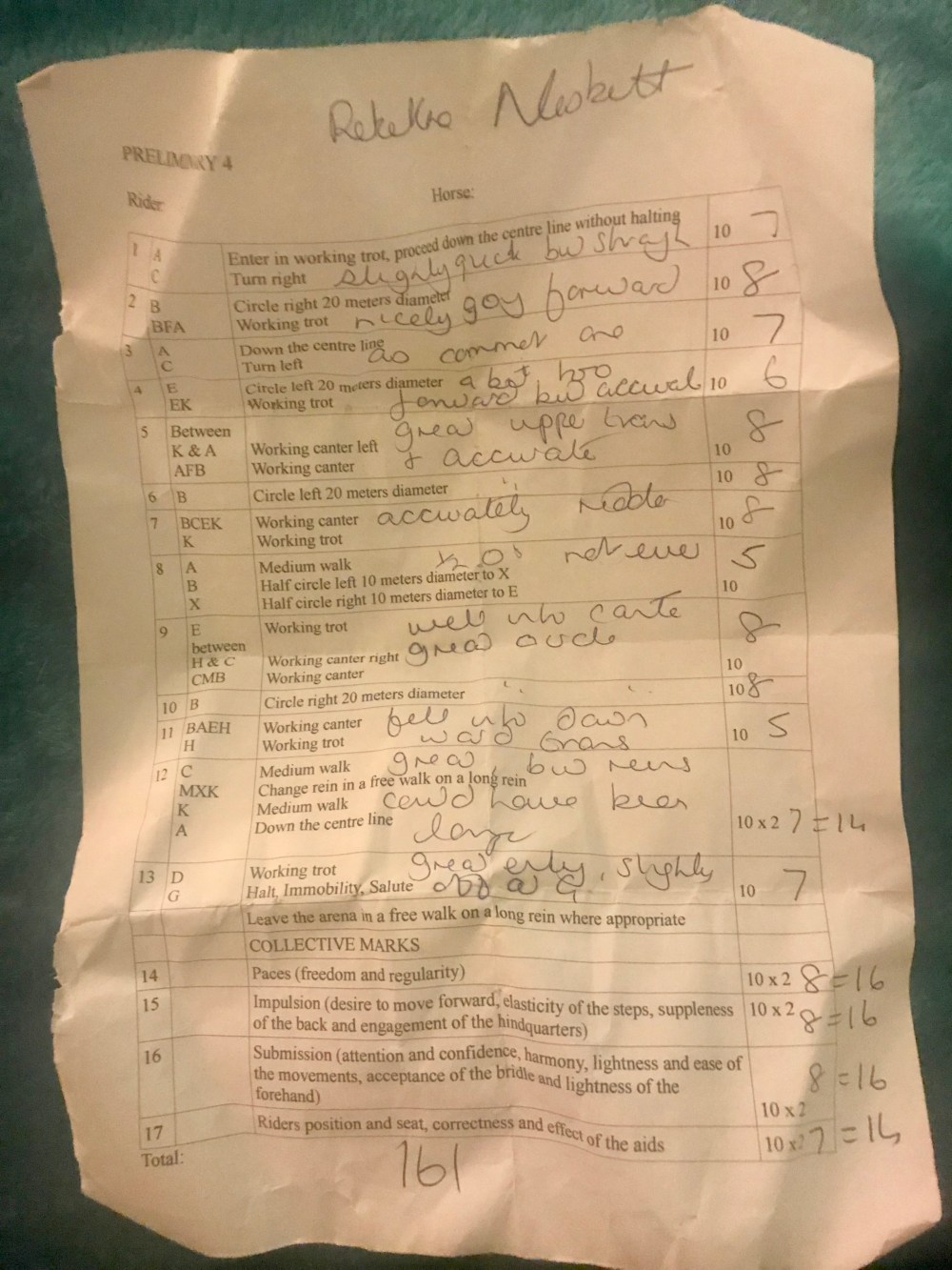Just found this… and I don’t know how I feel… I don’t really feel anything… it’s a mark sheet from riding, and yes I understand some people would feel dislike but honestly I quite like the ‘new me’ which has come from this ‘nightmare’.