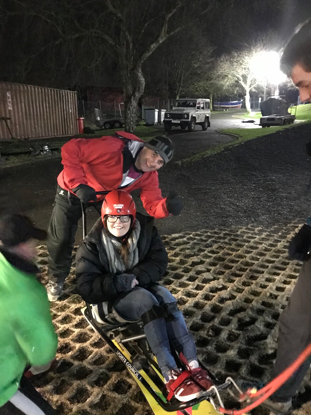 Tonight my lovely, super, thoughtful doctor friend Ana arranged for me to give sit skiing a go! It was good fun!