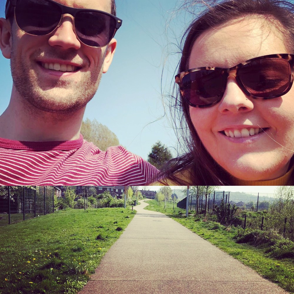 After physio this morning it was a lovely day so James walked me down to the park. It was a very nice trip! Here’s a photo: