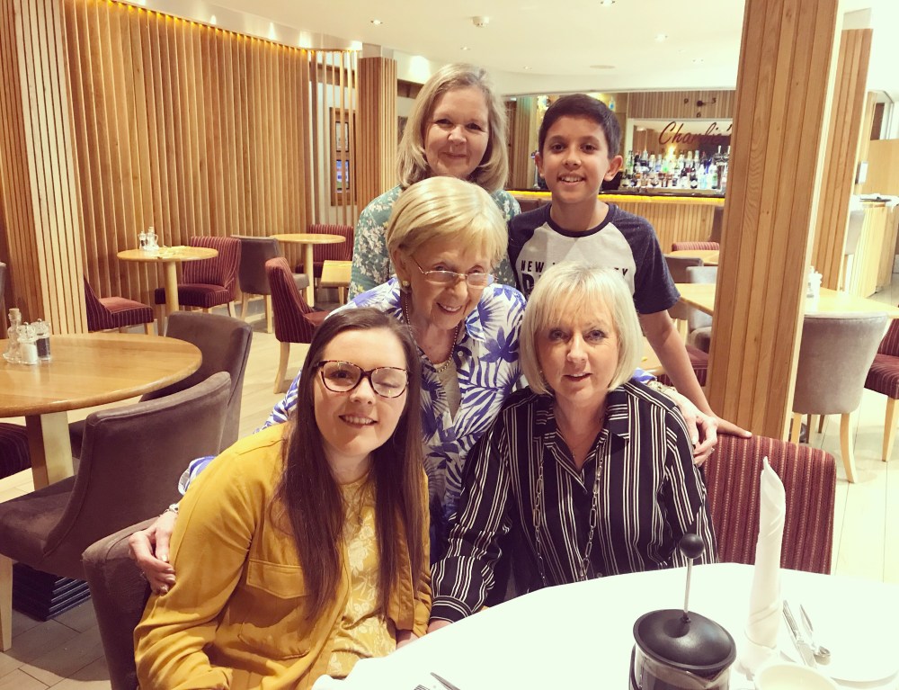 Today is granny’s birthday! So we went for lovely afternoon tea at the lovely La Mon hotel and country club https://www.lamon.co.uk was beautiful and it meant granny had a wonderful birthday as a lot of the family were there. Me, mum/Linda, James and dad/Robert were there and auntie Valerie (Mums sister) and her son Aaron were there too, and to make it extra special they came all the way from Brighton in England! Granny had a lovely birthday and looks wonderful for 86!