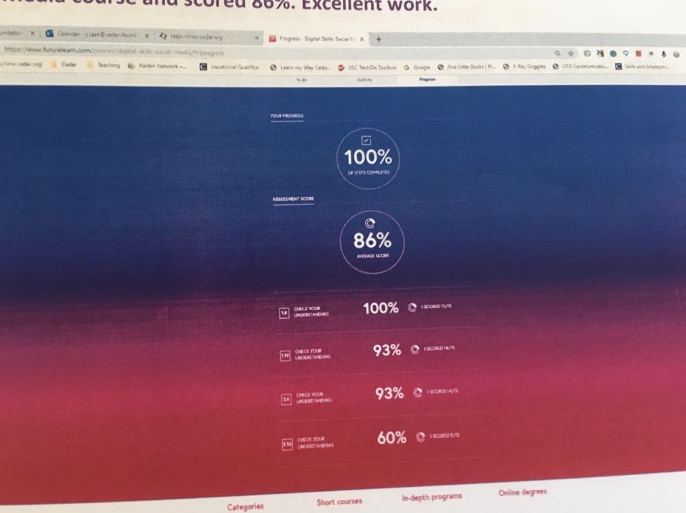 I’m doing future learn through training at cedar foundation (the brain injury charity to help people with brain injury and autism and other conditions to get into the work place).