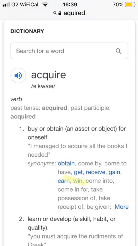 Abi = acquired brain injury that’s what I have an abi. So I wondered what exactly the definition of acquired was so I went and asked my friend google for the exact meaning…
