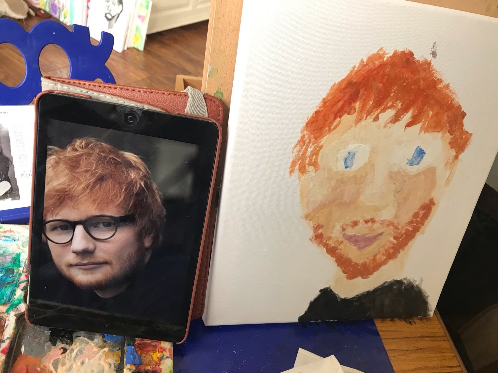 Intelligent (uncle) Thomas calls him the ginger chimp. It’s in a loving, affectionate way though because chimps are intelligent and can use tools in the closest way to humans – (could be another way for to back up Ed the chimp plays the guitar!)