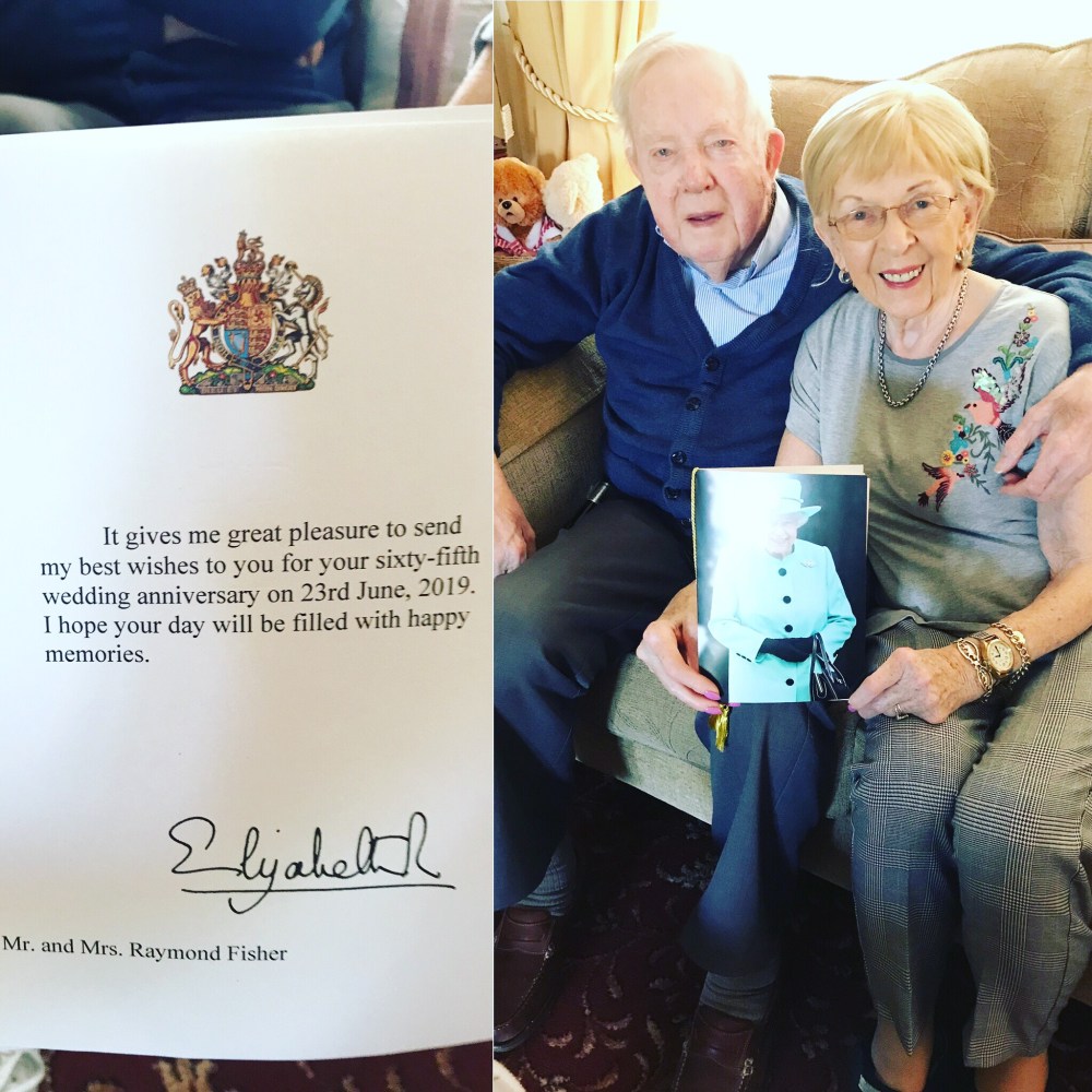 My grandparents have reached their 65 year wedding anniversary! So they received a card from the Queen! Don’t how what they have done to get there but they have done something right! And they are still very much in love π it’s so cute!