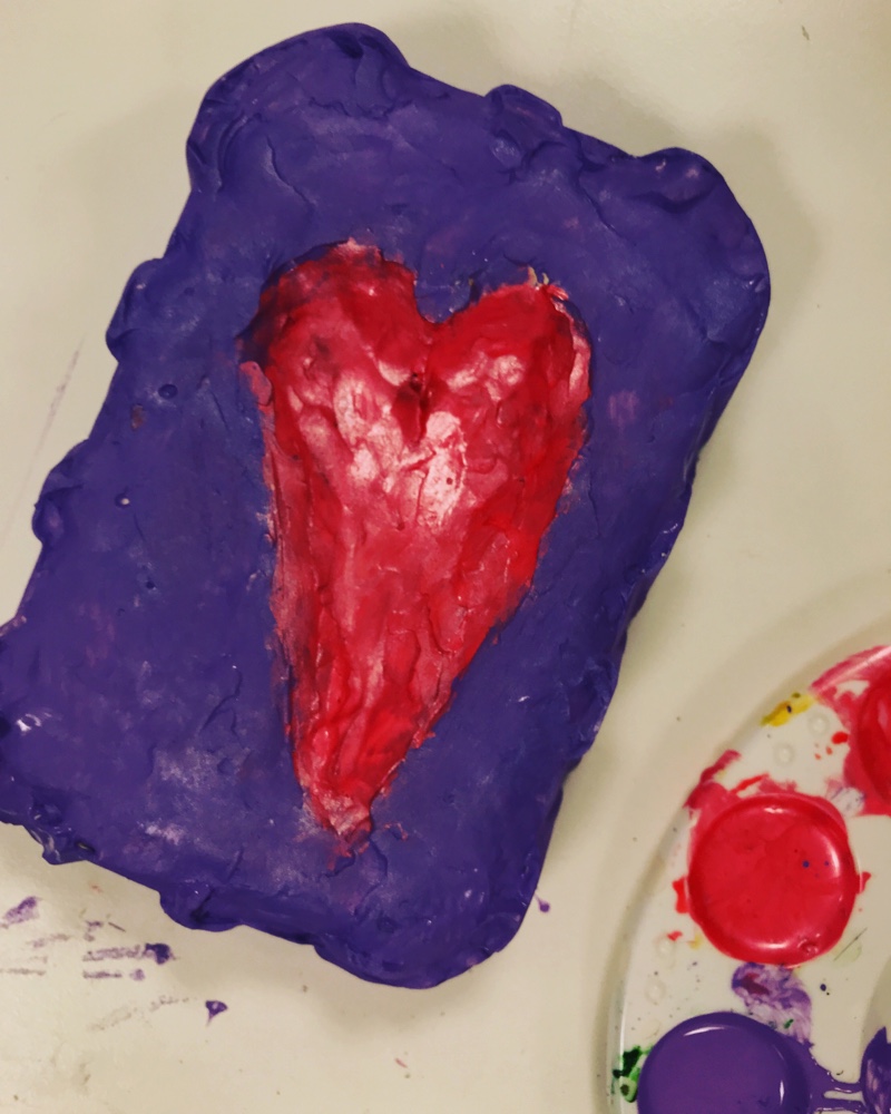 We also painted the clay shapes we made last week. So I painted my heart! (Or if you read the blog last week the bum, boobs or naked lady. π uncreative people in BIM)