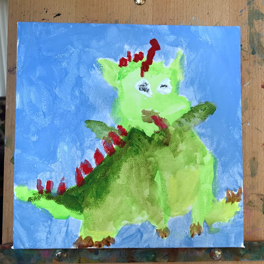 As you know I love painting, I always liked it but now I adore doing it. It’s very therapeutic and it also helps me practice my fine motor skills. So today I did a wee cartoon dragon for a lovely girl I went to school with – her wee son!