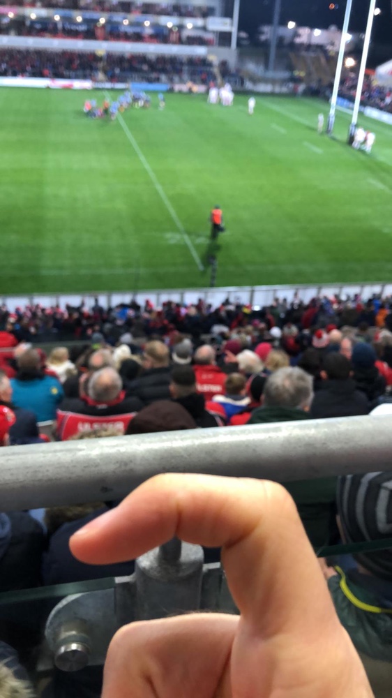 Tonight I was at the Ulster rugby match! As I’ve said before James and I were season tickets holders before the crash though we were in the standing area which obviously wouldn’t suit now with me only learning to walk! So we opted for the disabled area which allows me to bring the wheelchair while I need it. This area is different to the standing place we used to be in as you didn’t have an exact spot or neighbours were as now we have both! Our neighbours are really lovely into the bargain and we have a superb view so couldn’t ask for better!