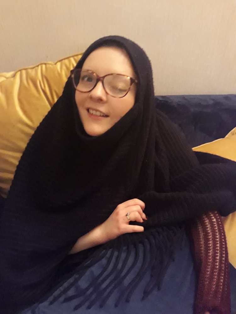 Auntie Karen dressed me up using my poncho. She said I had taken holy orders! 😆