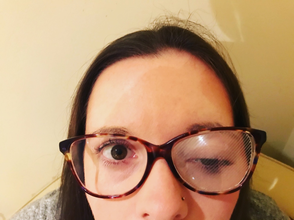 The same photo as I put in a blog earlier but with my glasses on! I just wanted to share it cos I’m loving this geek chic look I’ve got going on! 🤓 #vaininjury #braininjury #samething #geekchic #toobadaboutthatdodgeeye