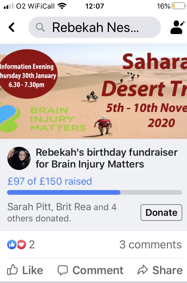 As you probably all know if you’re on Facebook when it’s coming up to your birthday you can pick a charity to support as your birthday charity. I obviously picked Brain injury matters (BIM) as I love it!