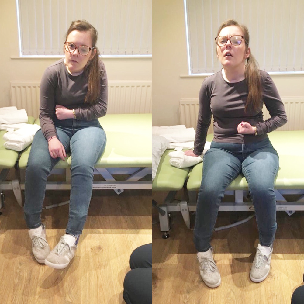 Two photos we took in physio today. The first image is bad sitting posture the second is good sitting posture. I should always aim to be sitting well. Then hopefully that will be the ‘natural’ way for my body to sit! I’ve been to lacks on my posture so need to build it back so can learn walk straight and not in the figure c! (And note to self it carry’s the fat better!) #braininjury