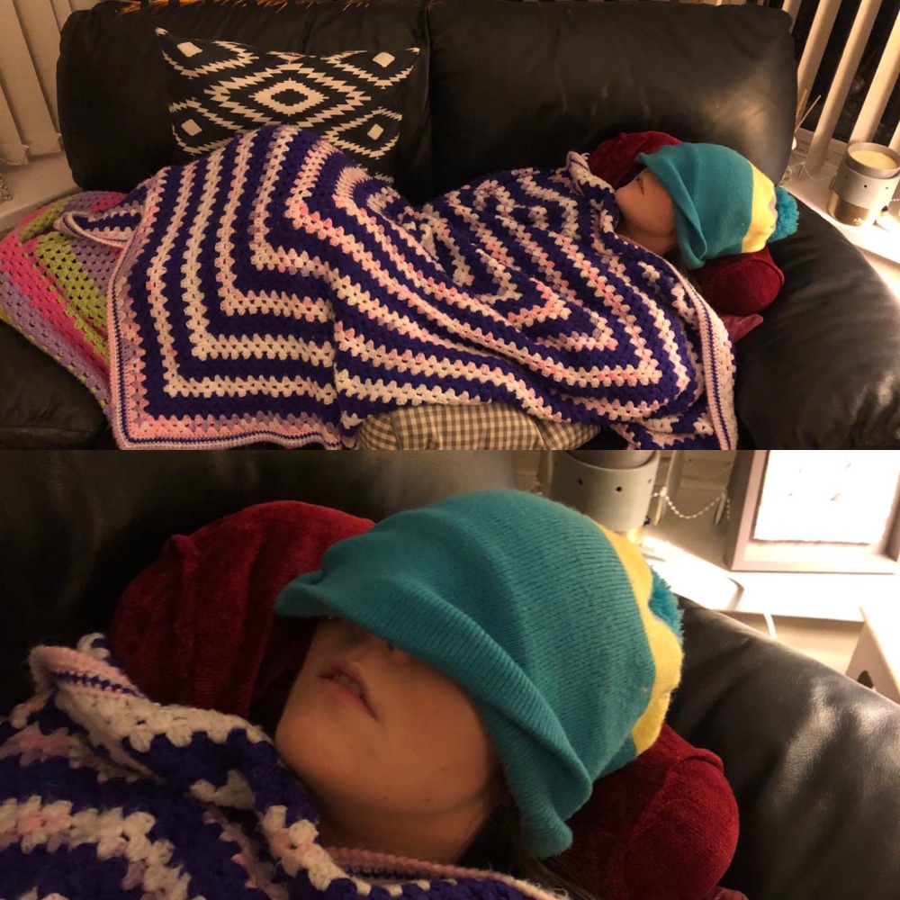 I’ve said this a number of times but sleep is majorly needed after brain injury. Tonight James came up for dinner but mainly to see me…and this happened! ☹️😂 my busted brain was tired. Lucky he’s a really good egg and doesn’t mind!!