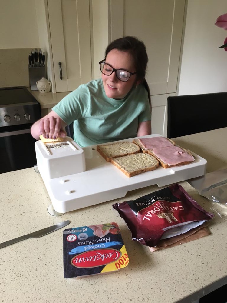 Used a one handed work station that I can say I couldn’t do it without having it so if you need help with your hands when cooking I would seriously advising one of these. You can get these online!
