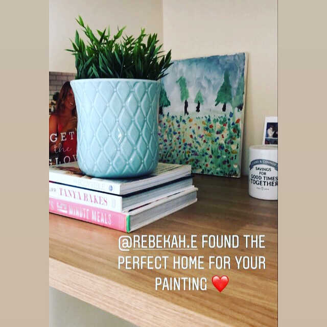 My lovely friend who I grew up with called Claire, now lives in England with her fiancé . So I’m delighted she has chosen to display one of my paintings in her home.