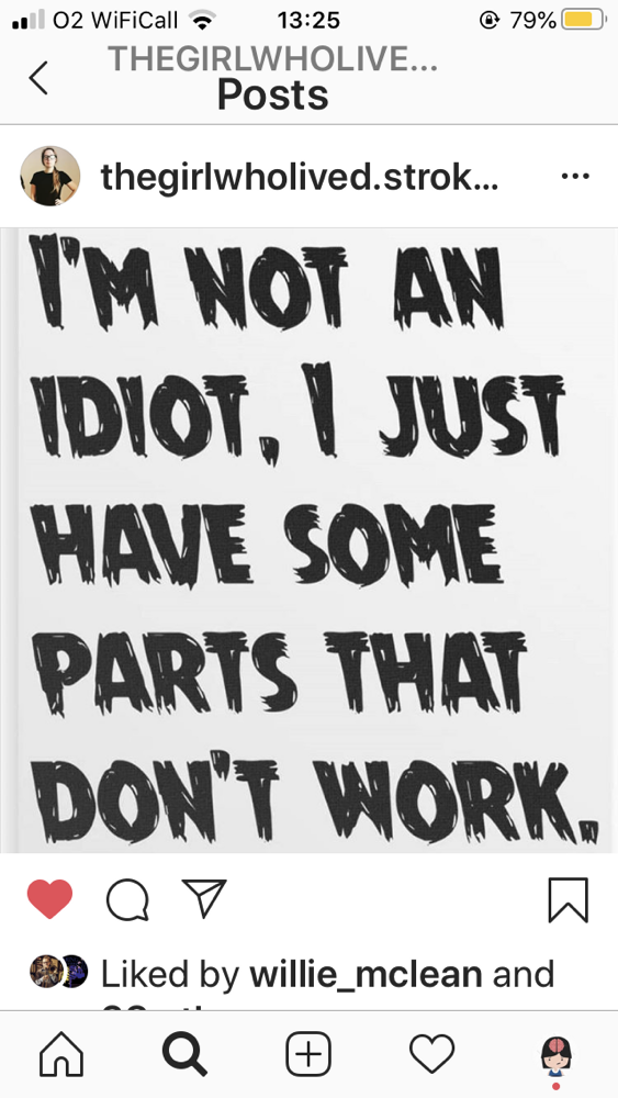 I just read it and thought wouldn’t it be nice if there was a sign that just hovered over your head so you didn’t have to explain yourself, so people would know I might not be physically 100% able but my intellect and intelligence is just fine thanks, don’t be afraid of me!