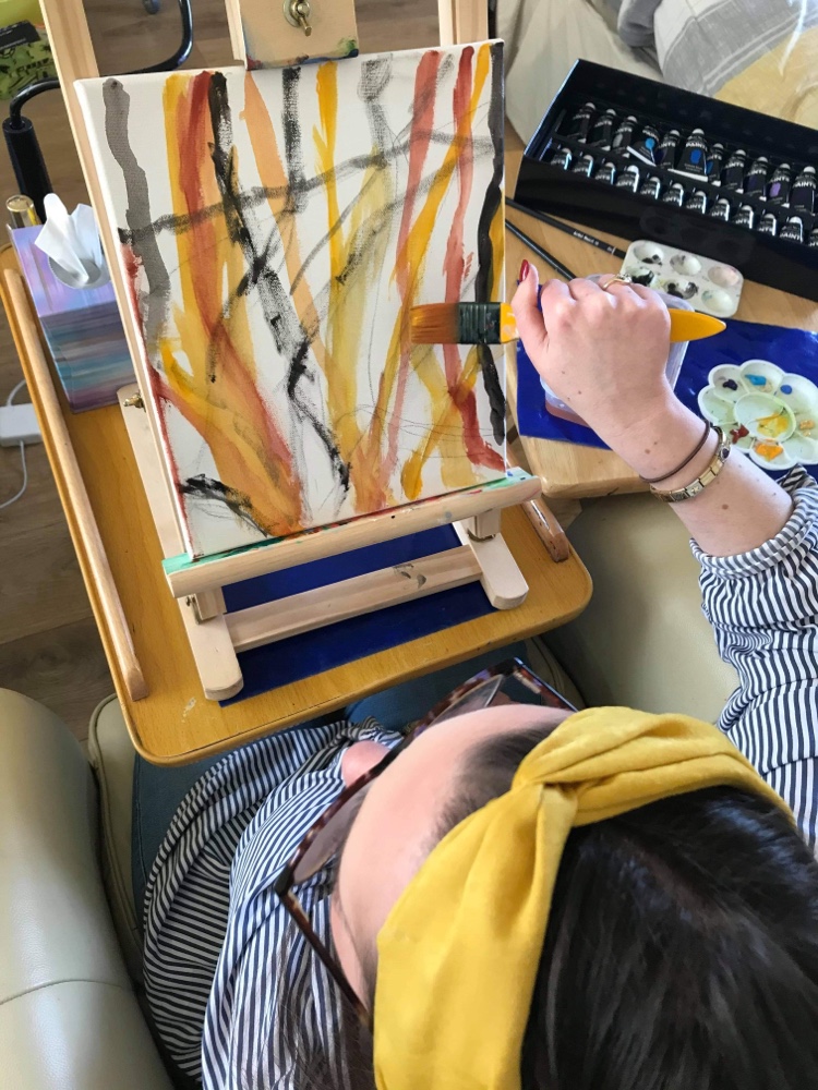 Today in the brain injury matters art we were painting using the Haiku technique again on the piece above by Azumi Uchitani.