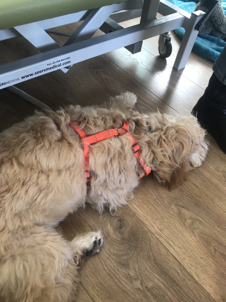 Alfie Anderson came and chilled with me this morning while James was out playing golf. He got comfortable below my plinth!