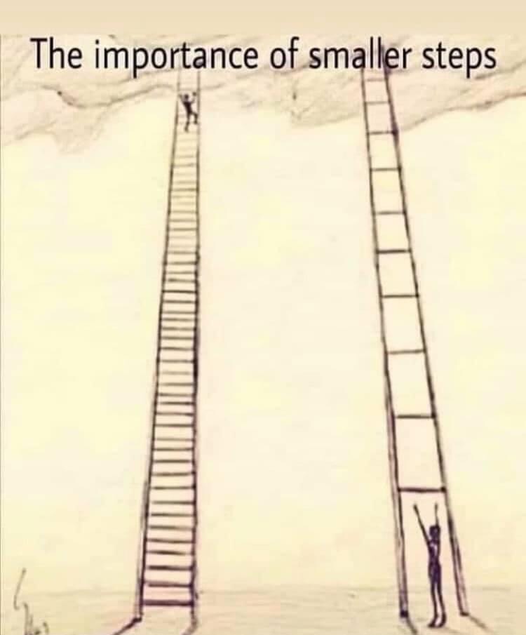 I love this analogy. Yeah sometimes I feel like my steps are too small but when a number of them are added up it should hopefully mean I’d have covered more are than if I took larger, wobbly, uncertain steps.