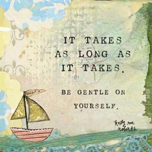 Got sent this today by my dearest hospital friend. I’m am thankful she has reminded me of this. It will take as long as it takes. I have to learn to have patience, I hate it, but hating it more and more won’t speed up this road for me.I think I may have shared this before but I saw it on Instagram today too. It teaching me many things, one of them being patience.