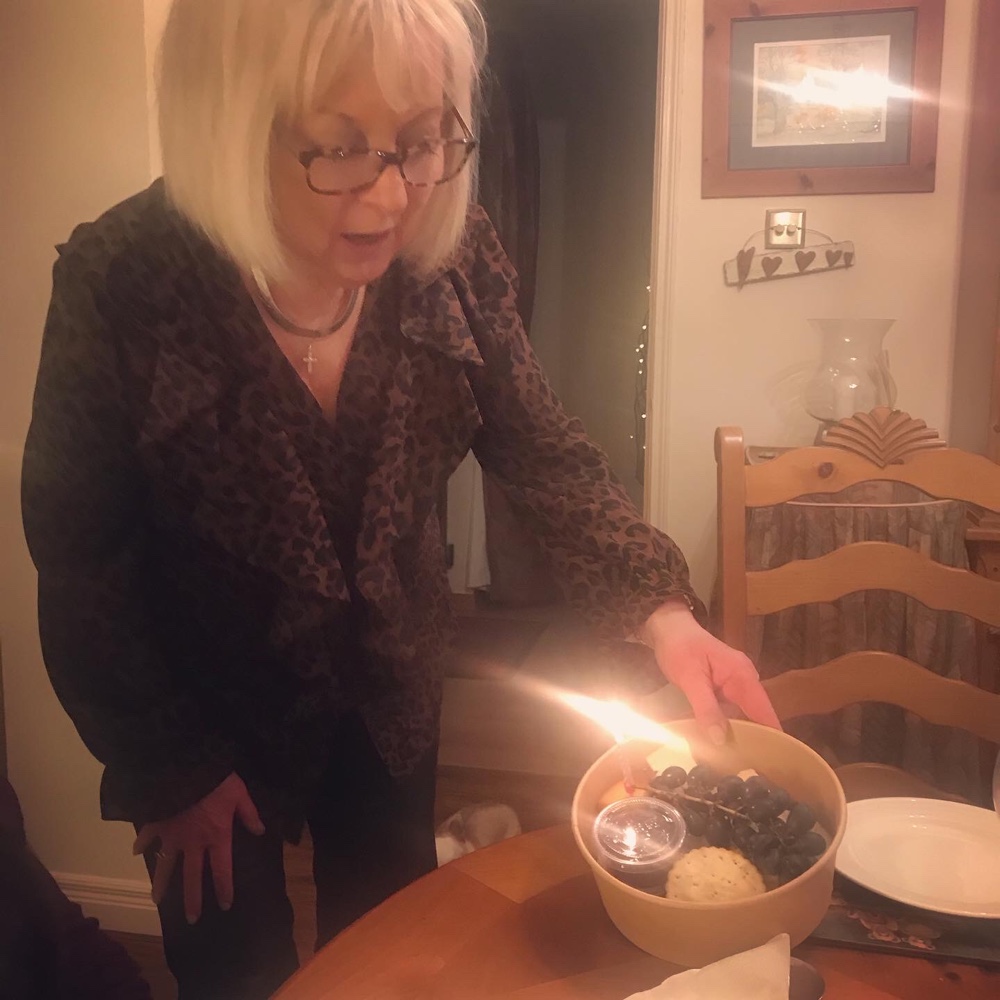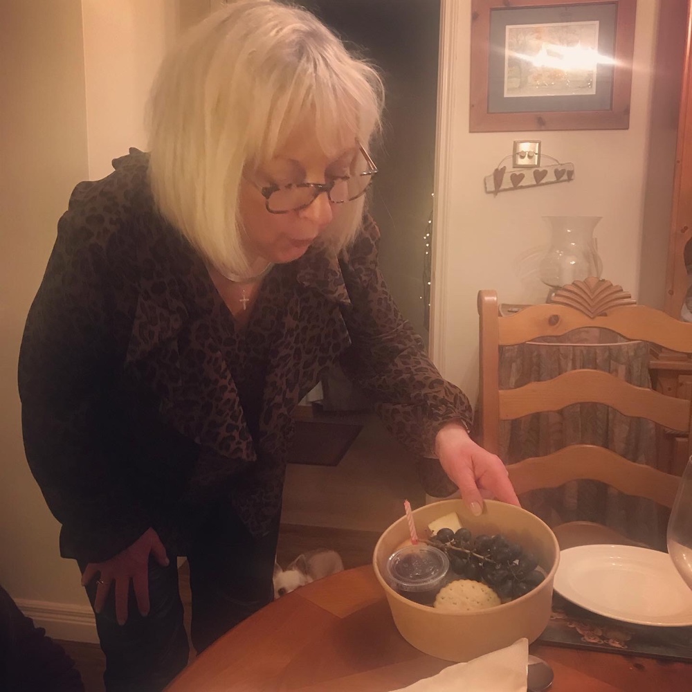 So I decided we would get a wee selection of cheeses for dessert! We made this into a ‘cheesecake’ for Linda so we could sing her happy birthday 🥳