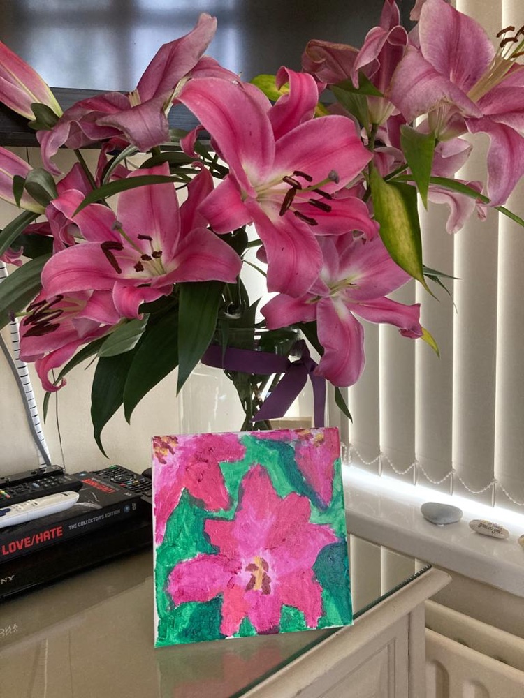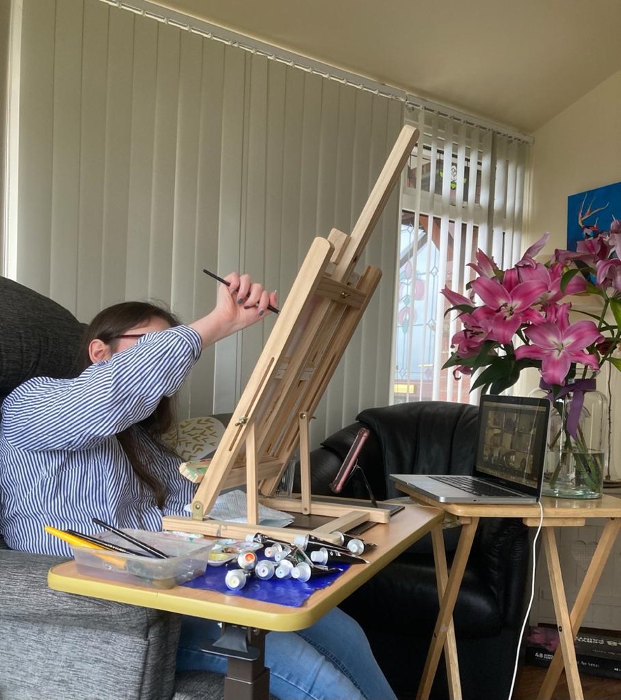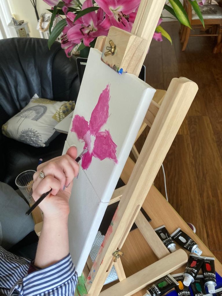 I loved the art workshop this week. To try and challenge my core I decided to paint reaching my arm higher. Reaching up engages my core, that’s what I think QV as told me in the past so i thought maybe I could paint reaching up! I think it worked out well! So hopefully it killed two birds with one stone and it’s me doing two of my favourite things at once!