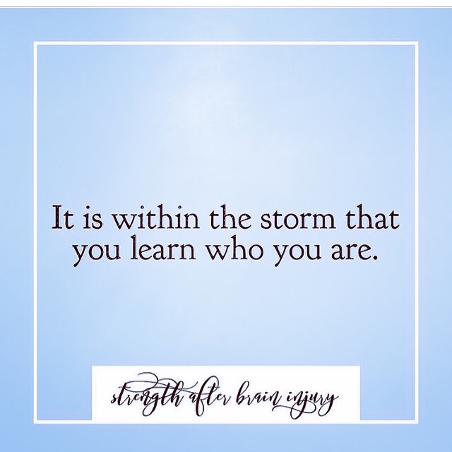 The brain injury storm is so rough. You really learn who you are, facing the despair whilst trying to celebrate your successes.