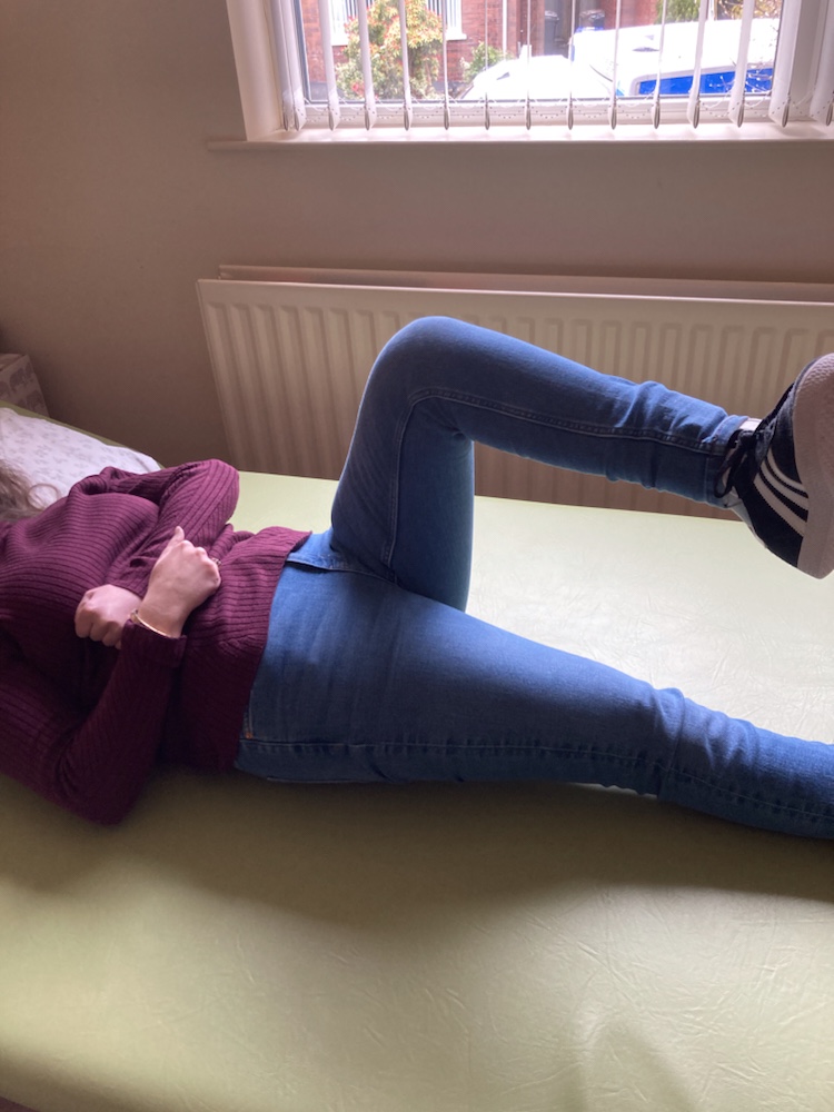 Here is a picture this afternoon of me with no help lifting both my right and left leg!