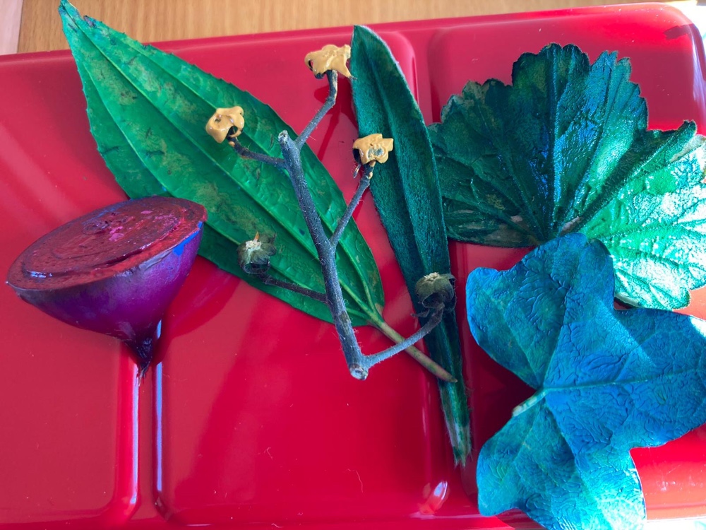 We took up printing as the style. So as it was done when I was in my parents, I found some natural materials I could use to create the print!