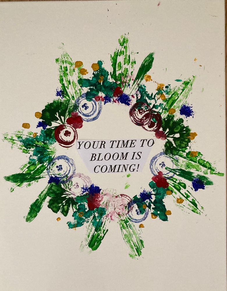 I am really happy with the final result. As it was of a wreath and done through Brain Injury Matters I decided to print off a message I (and others with brain injuries) am making myself believe my time to bloom is coming.