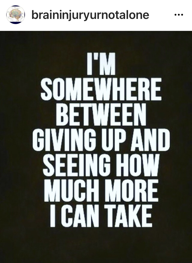 Posted on May 13, 2021May 14, 2021 by RebekahEmily Repost: @braininjuryurnotalone I relate to this a lot. Like sometimes I feel like it’s improving but then sometimes not getting better or but I am to stubborn not to try and fight for myself. https://instagram.com/braininjuryurnotalone?igshid=1ot492d2d996y Share this: Click to share on X (Opens in new window) X Click to share on Facebook (Opens in new window) Facebook Like Loading...
