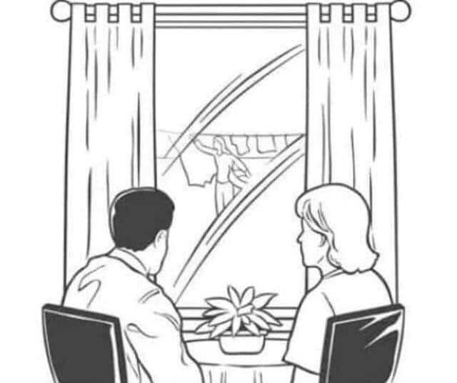 The next morning while they were eating breakfast, the young woman saw her neighbor hanging the washing outside.