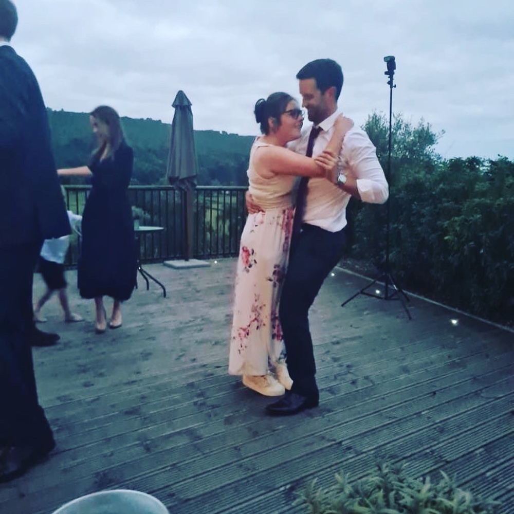 This weekend was the wedding of Jenny (James’s sister) and her – now husband – Andy! It was in the Peak District in England, we stayed in a beautiful venue: https://www.the-cattle-shed.co.uk for the weekend and they got married in the glorious village of Bakewell (in the Peak District). It was glorious. I thought I would share some photographs of James and I dancing! I’m so pleased I can do this now. Yes I still need James’s help to stay balanced but I hope I am getting there!