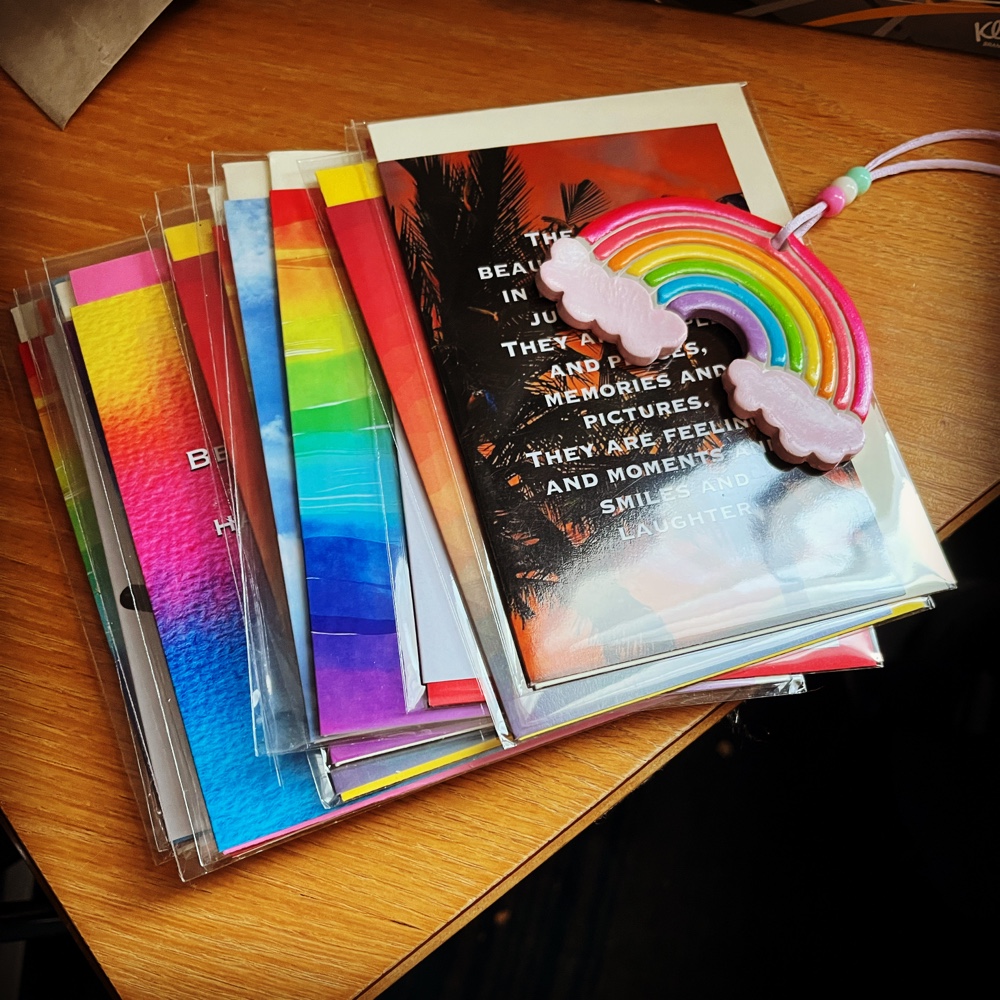 Some people are just so kind! ❤️ I was at outdoor market at the Lowry centre, Manchester and mum and I were looking at some stalls. We stopped at one particularly with nice wee trinkets that were beautiful! We got speaking to the lady there and explained about my accident and being in Manchester for the neurology physio therapy centre trying to learn how to independently walk again. I was not at all excepting anything, the woman was clearly just really kind and encouraging as for free she handed me a pile of the encouraging cards and a lovely rainbow hanging decoration (I didn’t mention I had a brain injury and I thought rainbows were a sign of encouragement for tbi, just a coincidence!) she was just so kind and really made my day! I didn’t even get her name or how to promote her stall, but she has really made my day! 💝