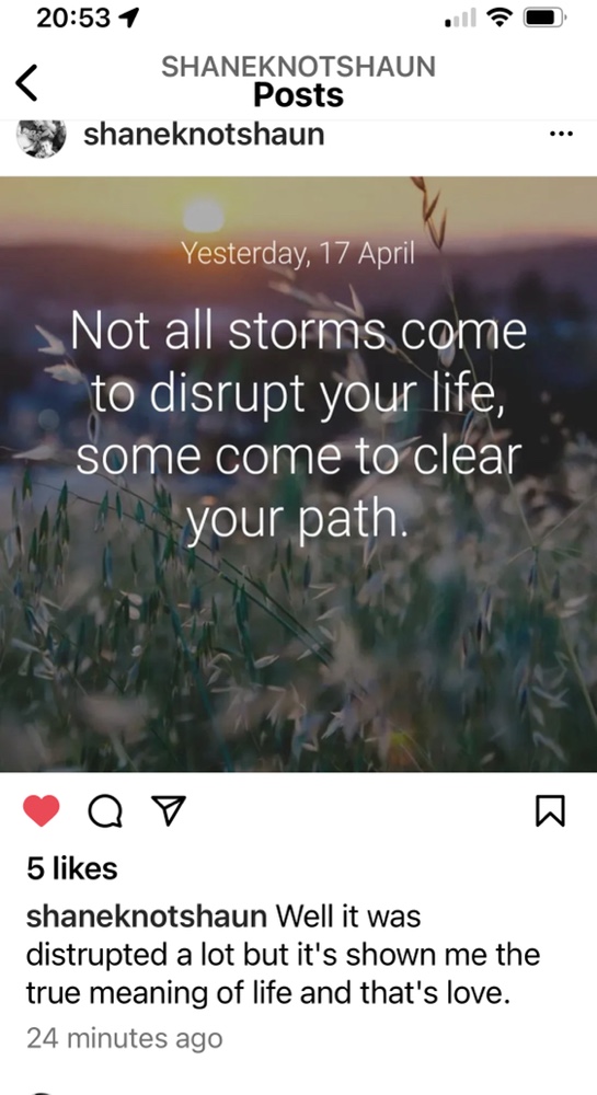 Posted on April 18, 2022April 18, 2022 by RebekahEmily Exactly what @shaneknotshaun says ‘it’s shown me the true meaning of life and that’s love.’ #tramaticbraininjury Share this: Click to share on X (Opens in new window) X Click to share on Facebook (Opens in new window) Facebook Like Loading...